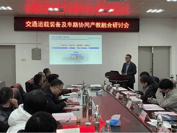 、智慧交通研究院联合主办了交通运载装备及车路协同产教融合研讨会,会议邀请了东风汽车纳米科技(襄阳)有限公司、襄阳达安汽车检测中心有限公司、湖北物资流通技术研究所、湖北三环锻造有限公司等16家企事业单位相关负责人。党委副书记张樊,麻豆网