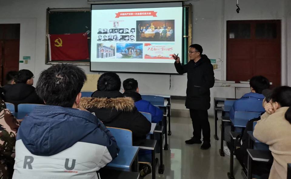 学生于8栋A区506教室开展了以“大国规划与中国共产党——深入学习五中全会精神”为主题的第五次党课教学。此次党课由学工处副处长高其文老师主讲。
