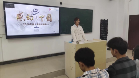 学生党总支于八栋A-105教室开展“红色观影”活动。此次观影邀请到了2021重培培训班部分成员以及车辆2012班的积极分子观看《2020年度感动中国十大人物》,本次观影活动由学生党总支宣传部干事郭欣主持。