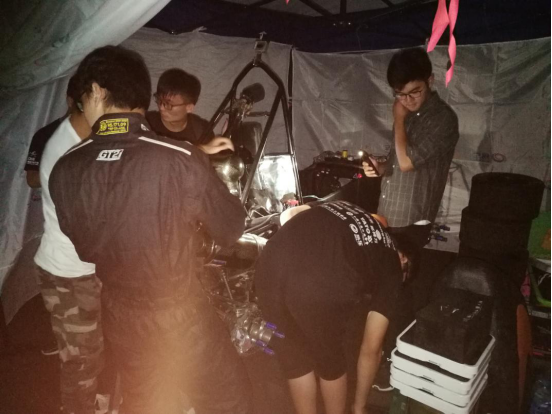 大学生车队面对繁杂的工作和因赛事临近而带来的巨大压力,车队队员们没有退缩和畏难,他们埋头苦干、潜心钻研,夜以继日地挥洒汗水,通宵达旦地努力攻关,凭借坚韧的毅力和不辞劳苦的付出为即将到来的比赛做了最佳准备。