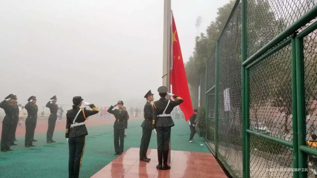 负责的以“砥砺奋进开新局”为主题的升国旗仪式在北区操场举行。院学工办主任韩鹏,辅导员张诗媛以及学生党员、学生干部代表和全体20级新生参加仪式。