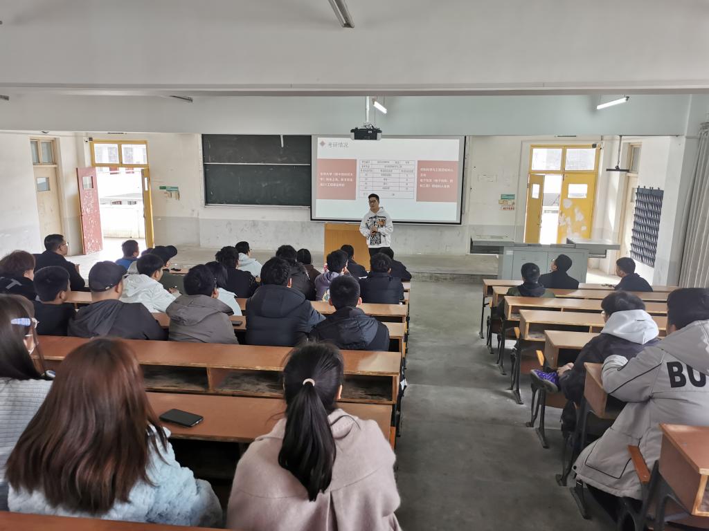 叶万海以“考研是未来,努力在当下”为主题,从考研发展趋势、考研的认识、科目准备、学校选择、复试准备五个方面给大家作了考研动员和指导。