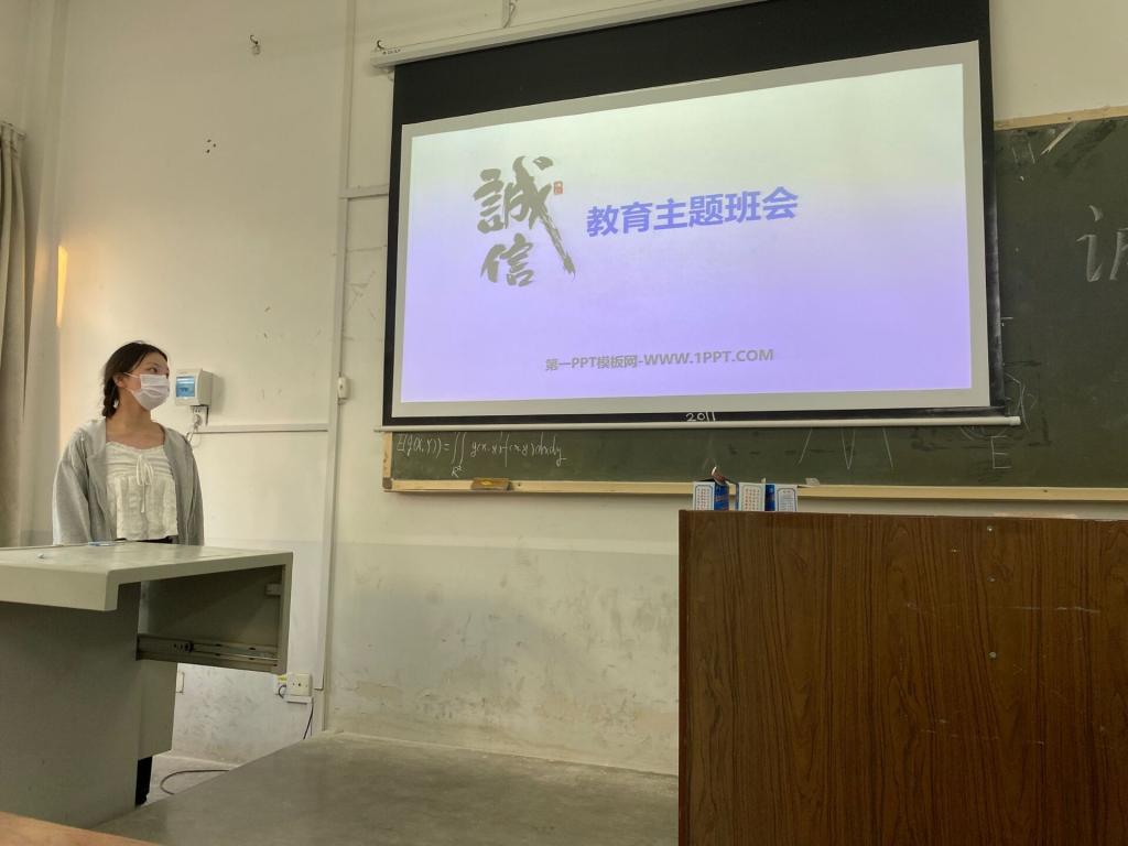 班会从讲诚信的重要性,做诚信人,诚信故事,失去诚信的后果等多个方面论述诚信是金,并让班级同学讲述自己身边的诚信问题,自查自纠平常生活中的不诚信问题。班会上同学们积极讨论,掀起了班会上的一波讨论热潮。接着,胡成契合五四青年节之际,号召班级青年同学们,青春正能量,奋斗是青春最靓丽的底色,人生路上唯有奋斗才能成功。最后以“青春不觉老朱颜,强半销磨薄领间”寄语结束本次班会。