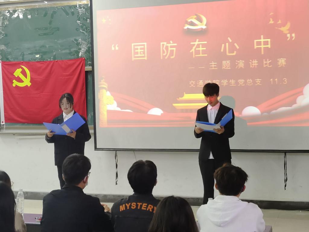 学生党总支11月3日于北区第8栋A506教室开展“国防在心中”为主题的演讲比赛,学生党总支书记柯柳晗及五名党员代表作为评委出席活动,21级入党积极分子、部分学生党总支干部干事以及22级大一新生参加。