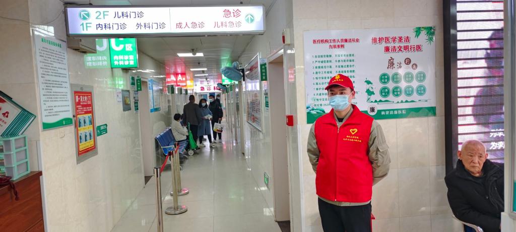 志愿者们负责在门诊大厅为患者提供导诊服务,协助患者自助挂号、缴费,陪伴行动不便的患者前往相关科室检查等等。