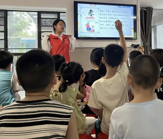 陈博宇首先使用了让小朋友们易于理解的语言讲述了孝文化的核心:“敬老爱老,幼敬长、下尊上,晚辈尊敬老人,子女孝敬父母,爱护、照顾、赡养老人,让老人们享受天伦之乐。”通过陈博宇的讲述,小朋友们对孝文化的有了全新的认识。