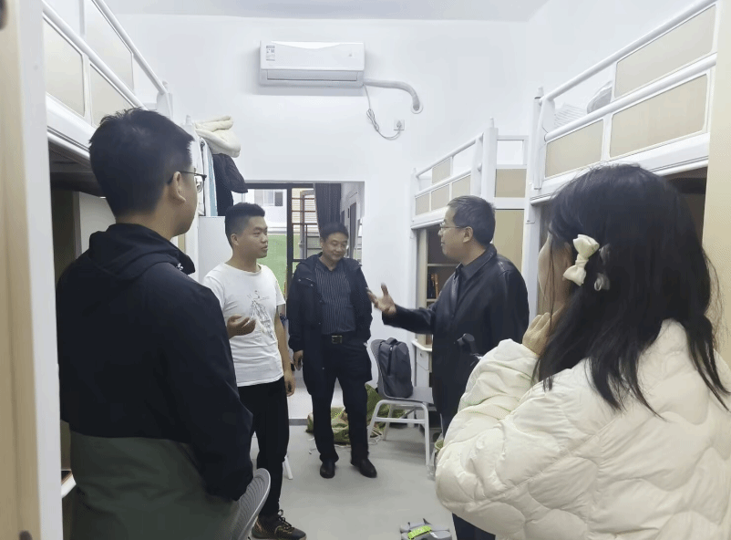 12日,麻豆网 卧龙校区麻豆网 “专升本”迎新工作顺利结束,学院党委书记詹玉刚、副书记刘向东和新生辅导员深入走访寝室。