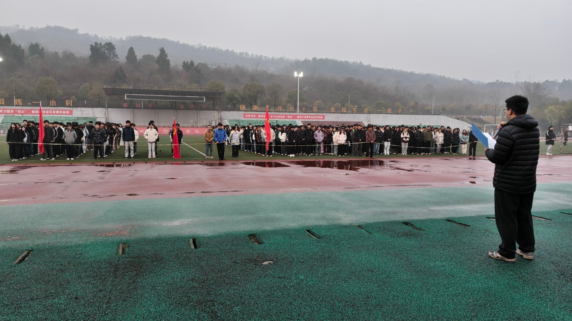 全体师生齐聚北区操场,隆重举行 “学雷锋践初心,志愿青春永在线” 主题升旗仪式。