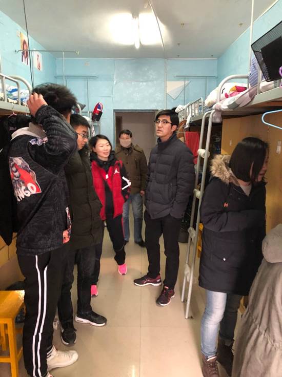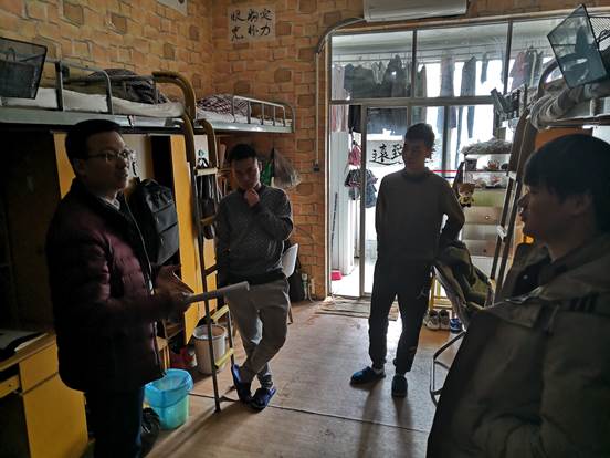 汽服1811班班主任刘祯博士和班级寝室导师张琎、程金铭、王敏旺、李燕等老师走访了汽服1811班所有寝室。刘祯说:“通过寝室走访,我发现与学生在寝室中谈话,与在办公室或教室不同,学生更放松,学生对老师的感觉不再是高高在上,访谈效果更理想。”