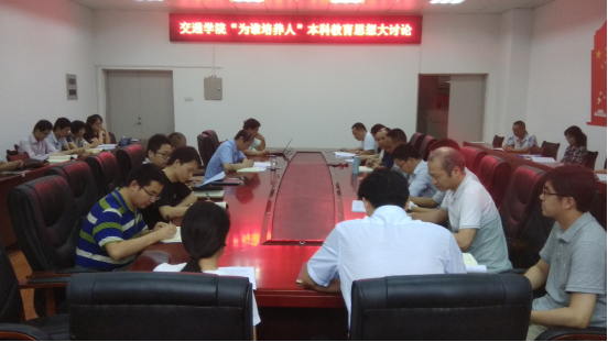 在学院会议室召开本科教育思想大讨论会议,本次讨论的主题是为谁培养人,全院教职工参加会议。
