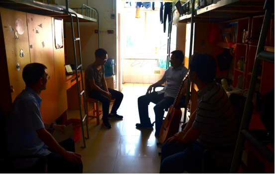 唐书记走进宿舍与钱伟同学亲切交谈,详细询问了钱伟的家庭情况、在校学习、生活情况,唐书记说艰难困苦玉汝于成,希望你坚持理想,坚守初心,勤奋学习。当得知该生从高中起就偏科,英语四级还没有过时,唐书记分享了自己考博时学习英语的方法,勉励钱伟同学要有信心、讲方法、从基础补起。临走之时唐书记给钱伟同学留了自己的微信和电话,嘱咐钱伟有任何困难找及时辅导员或者我,我们是你的坚强后盾。