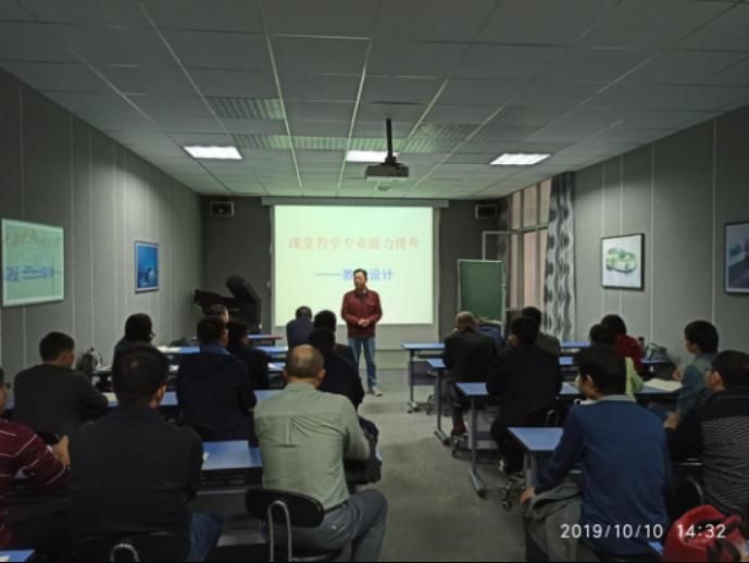 在工科楼GE-206会议室举行第四期教学沙龙——课堂教学专业能力提升培训。学院特邀物理与电子工程学院杨国海教授以课堂教学专业能力提升——教学设计做主题讲座,全体教师参加培训会。