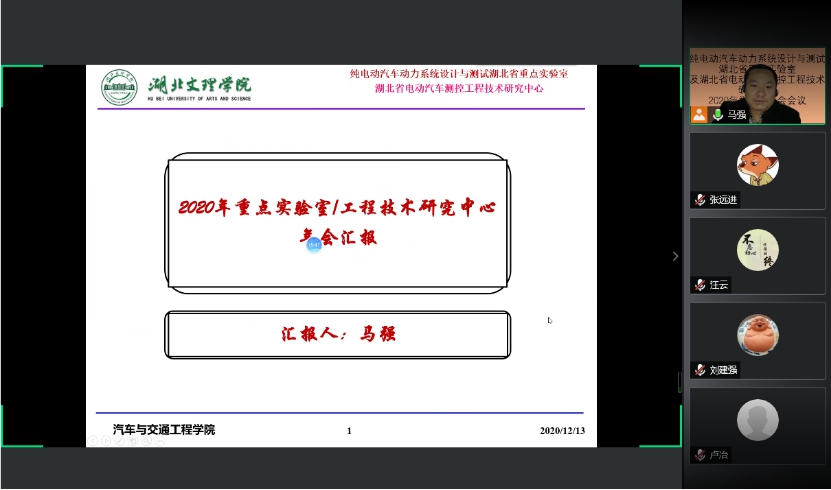 通讯员 张远进 马强)12月13日上午,纯电动汽车动力系统设计与测试湖北省重点实验室、湖北省电动汽车测控工程技术研究中心(以下简称实验室和工程中心)2020年学术委员会年会以视频会议形式召开。会议由学术委员会主任张幽彤教授主持。麻豆网