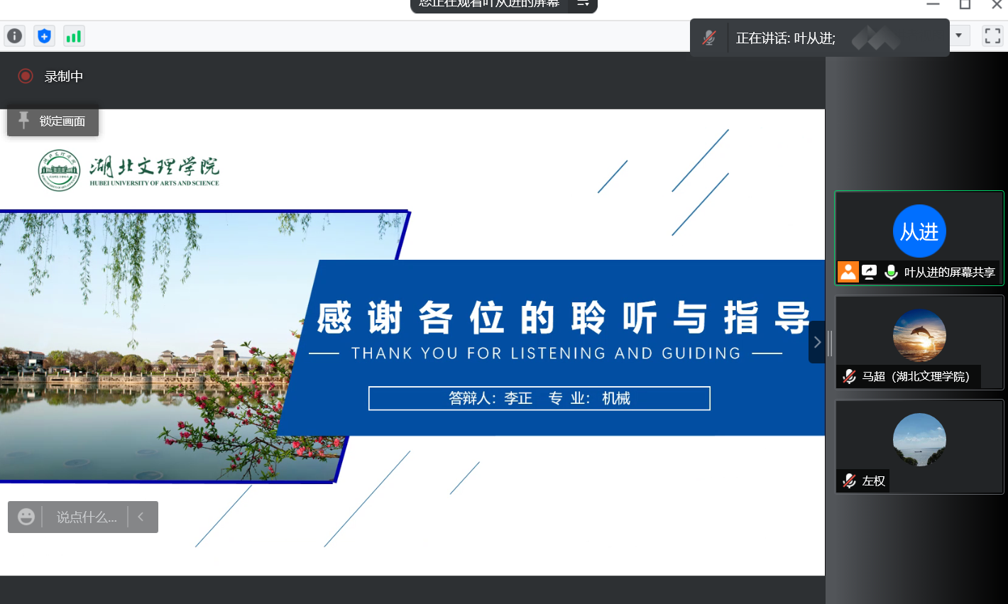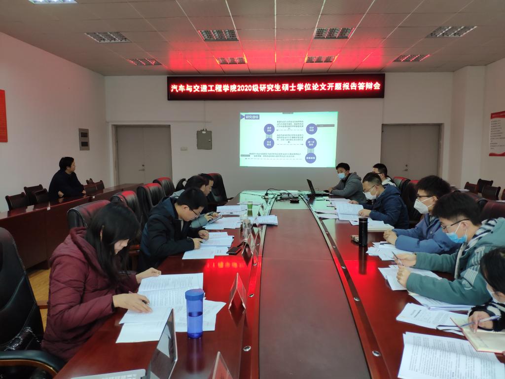 2020级机械(新能源汽车动力系统测控方向)专业硕士研究生学位论文开题答辩会在我院顺利召开。本次开题答辩会采用线上线下相结合方式进行,评审专家包括湖北诺伯特科技有限公司左权高级工程师、湖北超卓航空科技股份有限公司张清贵高级工程师、我校物理与电子工程学院刘会衡教授、我院张海军副教授、刘祯副教授、刘静副教授、聂金泉副教授、王书贤副教授、万锐博士、程清思博士,马超博士、李文新博士担任答辩会秘书。