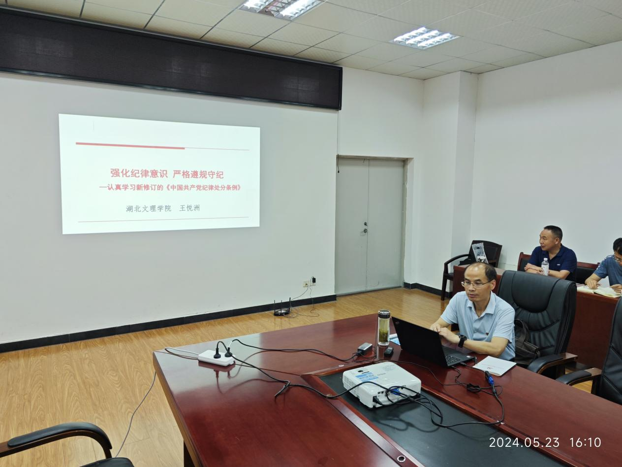 王悦洲以《强化纪律意识严格遵规守纪》为题,对新修订的《中国共产党纪律处分条例》主要修订内容和特点做了详细解读,并通过案例分析充分展现了条例的约束作用。他指出,全体党员要深刻认识此次《中国共产党纪律处分条例》修订的重大意义,进一步深化对加强党的纪律建设重要性和忽视党纪、违反党纪问题危害性的认识,做到知行知止、令行禁止。