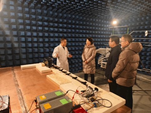在侯斐陪同下,汪云一行实地考察研究院CNAS实验室,详细了解设备配置、检测能力及在汽车电子、电磁兼容等领域的应用成果,听取技术人员讲解,并就实验室建设、研发方向等议题深入交流,全面掌握研究院科研实力与创新机制。